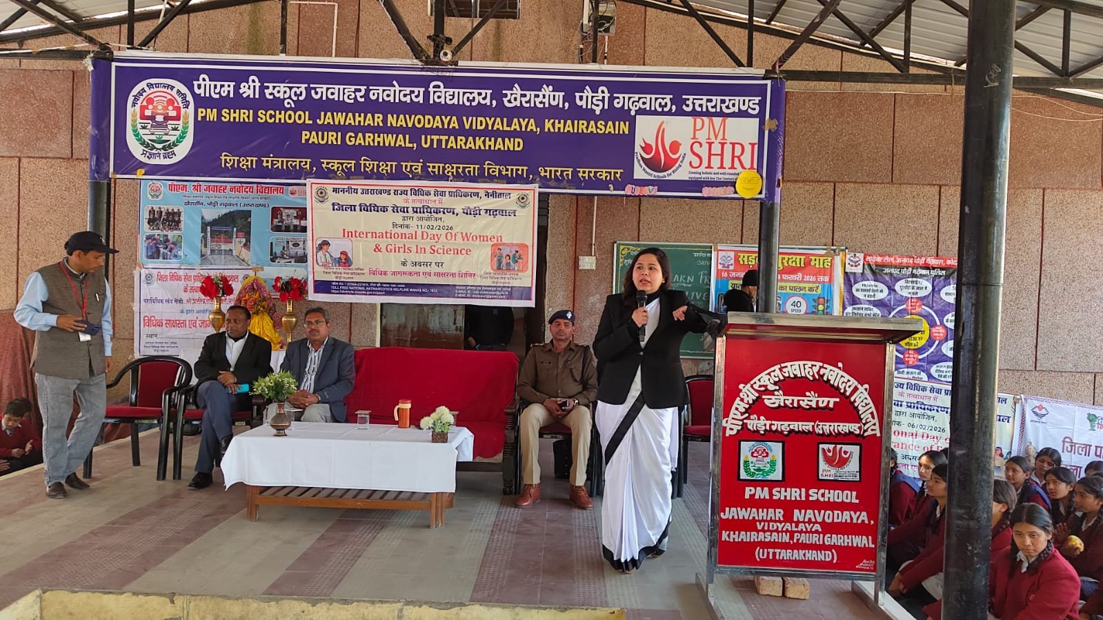 पौड़ी- जिला विधिक सेवा प्राधिकरण के तत्वाधान में खैरासैंण नवोदय विद्यालय में महिला एवं बालिका विज्ञान दिवस तथा महिला जननांग विकृति के प्रति शून्य सहनशीलता दिवस के अवसर विधिक जागरूकता शिविर आयोजित किया गया। शिविर में बाल संरक्षण कानून, बाल यौन अपराध संरक्षण अधिनियम-2012 (पॉक्सो), अच्छा स्पर्श–बुरा स्पर्श, यौन दुर्व्यवहार के दुष्प्रभाव, रोकथाम के उपाय, शिकायत एवं रिपोर्टिंग तंत्र के संबंध में विस्तृत जानकारी दी गयी।