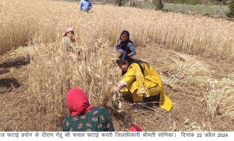 देहरादून। जिलाधिकारी सोनिका ने सोमवार को राजस्व ग्राम रायपुर में संपादित फसल कटाई प्रयोग का निरीक्षण किया। जिलाधिकारी ने इस दौरान स्वयं भी कृषकों के साथ गेंहू की कटाई की। कस्तकार अनुज भट्ट के खेत में 43.30 वर्ग मीटर में किए प्रयोग में उपज 10.24 किलो प्राप्त हुई। मौके पर सहायक निदेशक सूचना बी.सी नेगी, कानूनगो संजय सैनी, राजस्व उप निरीक्षक लक्ष्मी प्रसाद त्रिपाठी, अपर सांख्यिकी अधिकारी अरूण बहुगुणा,बिशन सिंह आदि उपस्थित रहे।