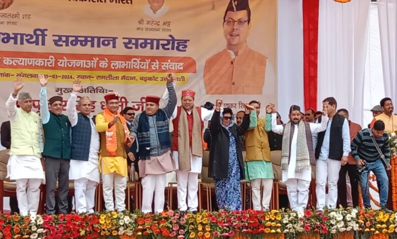 उत्तरकाशी/देहरादून। मुख्यमंत्री पुष्कर सिंह धामी ने मंगलवार को रामलीला मैदान, बड़कोट उत्तरकाशी में आयोजित ’लाभार्थी सम्मान समारोह’ में प्रतिभाग किया। इस अवसर पर उन्होंने नगर पंचायत पुरोला को नगर पालिका परिषद, पुरोला बनाए जाने की घोषणा भी की। मुख्यमंत्री पुष्कर सिंह धामी ने केंद्र एवं राज्य सरकार द्वारा चलाई जा रही विभिन्न जनकल्याणकारी योजनाओं के अंतर्गत लाभार्थियों को सामग्री, चेक प्रदान किए। जिसमें पीएम ड्रोन दीदी योजना के अंतर्गत वीरांगना कृषि उत्पादन संगठन जखोल को खेती बागवानी के काम में आने वाले ड्रोन केन्द्र के संचालन हेतु दस लाख रूपये की लागत का ड्रोन प्रदान करने के साथ ही सीएम राष्ट्रीय कृषि विकास योजना के तहत फार्म मशीनरी बैंक के लिए समूहों को कृषि यंत्र। लखपति दीदी योजना, ईजा-बोई शगुन योजना सहित विभिन्न योजनाओं के लाभार्थियों को देय अनुदान व योजना राशि के चेक वितरित किए एवं प्रधानमंत्री आवास योजना की अनेक लाभार्थियों को आवास की चाबी प्रदान की।