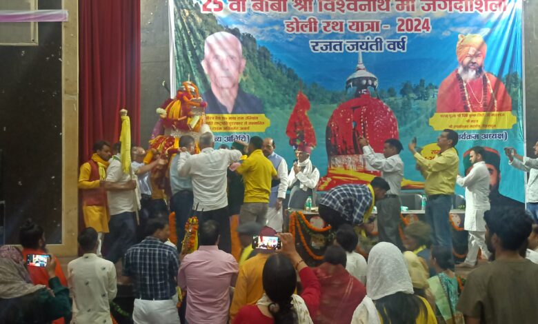 देहरादून। बाबा श्री विश्वनाथ मां जगदीशिला डोली की 25वीं रथ यात्रा का रविवार को नगर निगम कार्यालय परिसर देहरादून में भव्य स्वागत हुआ। इससे पूर्व देहरादून में शहीद स्मारक स्थल पर भी डोली यात्रा का स्वागत किया गया। शहीद स्मारक स्थल पर राज्य आंदोलनकारी मंच ने डोली यात्रा का स्वागत किया। नगर निगम देहरादून में आयोजित स्वागत कार्यक्रम की अध्यक्षता टपकेश्वर महादेव मंदिर के श्री महंत 108 कृष्ण गिरी जी महाराज ने की। इस कार्यक्रम में मुख्य अतिथि के रूप में आयुर्वेद गौरव वैद्य राष्ट्रपति पुरस्कार से सम्मानित डा. मायाराम उनियाल उपस्थित रहे। यहां पर देवभूमि संस्कृत विद्यालय के विद्यार्थियों द्वारा वंदना प्रस्तुत की गई। यहां पर भक्तों ने बड़ी संख्या में डोली का स्वागत किया व आशीर्वाद लिया। यह 31 दिवसीय डोली यात्रा 16 मई को शुरु हुई थी, जो कि 16 जून तक चलेगी। डोली यात्रा सम्पूर्ण उत्तराखण्ड का भ्रमण करेगी।