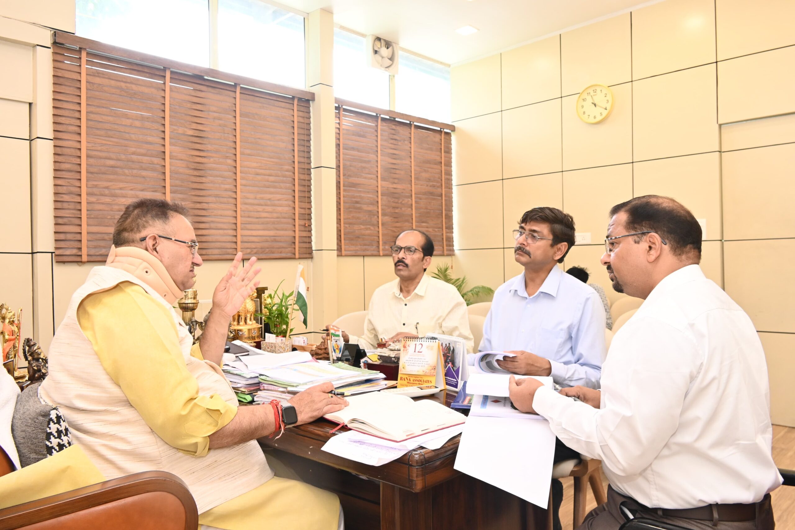 देहरादून। ग्रामीण विकास मंत्री गणेश जोशी ने गुरुवार को हाथीबड़कला स्थित कैंप कार्यालय में पीएमजीएसवाई के अधिकारियों के साथ विभागीय कार्यों की समीक्षा कर विभाग द्वारा किए जा रहे कार्यों की प्रगति की विस्तार से जानकारी ली। ग्रामीण विकास मंत्री गणेश जोशी ने पीएमजीएसवाई के अंतर्गत कार्यों के संबंध में अधिकारियों को आवश्यक दिशा निर्देश दिए। ग्रामीण विकास मंत्री ने पीएमजीएसवाई (च्डळैल्-।,।। ) की शेष 134 सड़के जिसमे 85 सड़के 49 पुलों के निर्माण कार्य को शीघ्र पूर्ण करने के निर्देश दिए। उन्होंने अधिकारियों को पीएमजीएसवाई के अंतर्गत आपदा में क्षतिग्रस्त हुई सड़को के कार्यों को शीघ्र किया जाए। अधिकारियों द्वारा बताया गया कि आपदा में क्षतिग्रस्त हुई सड़को की मरम्मत के लिए वर्ष 2022-23 में 25 करोड़ रुपए मिले जिसमे सभी कार्य पूर्ण हो चुके और इस वित्तीय वर्ष में 46 करोड़ 65 लाख रुपए सड़कों की मरम्मत के लिए प्राप्त हुए है। मंत्री ने निर्धारित समय पर कार्य पूर्ण करने के अधिकारियों को निर्देश दिए। उन्होंने अधिकारियों को वन स्वीकृति से संबंधित विसंगतियों को शीघ्र दूर करने के अधिकारियों को निर्देशित किया।