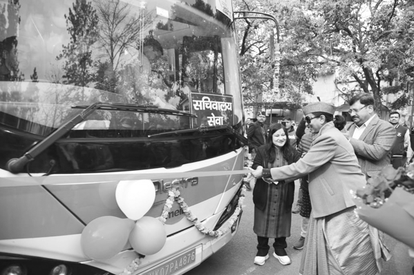 देहरादून। मुख्य सचिव श्रीमती राधा रतूड़ी ने सोमवार को सचिवालय के कार्मिकों के लिए सचिवालय कॉलोनी केदारपुरम से सचिवालय के लिए इलेक्ट्रिक बस सेवा का शुभारम्भ किया। इस बस सेवा के माध्यम से नियमित रूप से सुबह कार्यालय समय पर सचिवालय के कार्मिकों को सचिवालय कॉलोनी केदारपुरम से सुभाष रोड सचिवालय तथा शाम को सचिवालय से सचिवालय कॉलोनी केदारपुरम के लिए यात्रा सुविधा उपलब्ध हो सकेगी। इस अवसर पर सचिवालय कार्मिकों को बधाई देते हुए मुख्य सचिव श्रीमती राधा रतूड़ी ने कहा कि सचिवालय कार्मिकों के लिए इस इलेक्ट्रिक बस सेवा के संचालन से कार्मिक लाभान्वित होंगे तथा साथ ही देहरादून की ट्रैफिक समस्या को कम करने में सहायता मिलेगी। उन्होंने कहा कि ट्रैफिक समस्या के समाधान तथा पर्यावरण पहुलुओं को ध्यान में रखते हुए लोगों की सुविधाओं के लिए सार्वजनिक परिवहन को अधिक से अधिक प्रोत्साहित करने की जरूरत है।