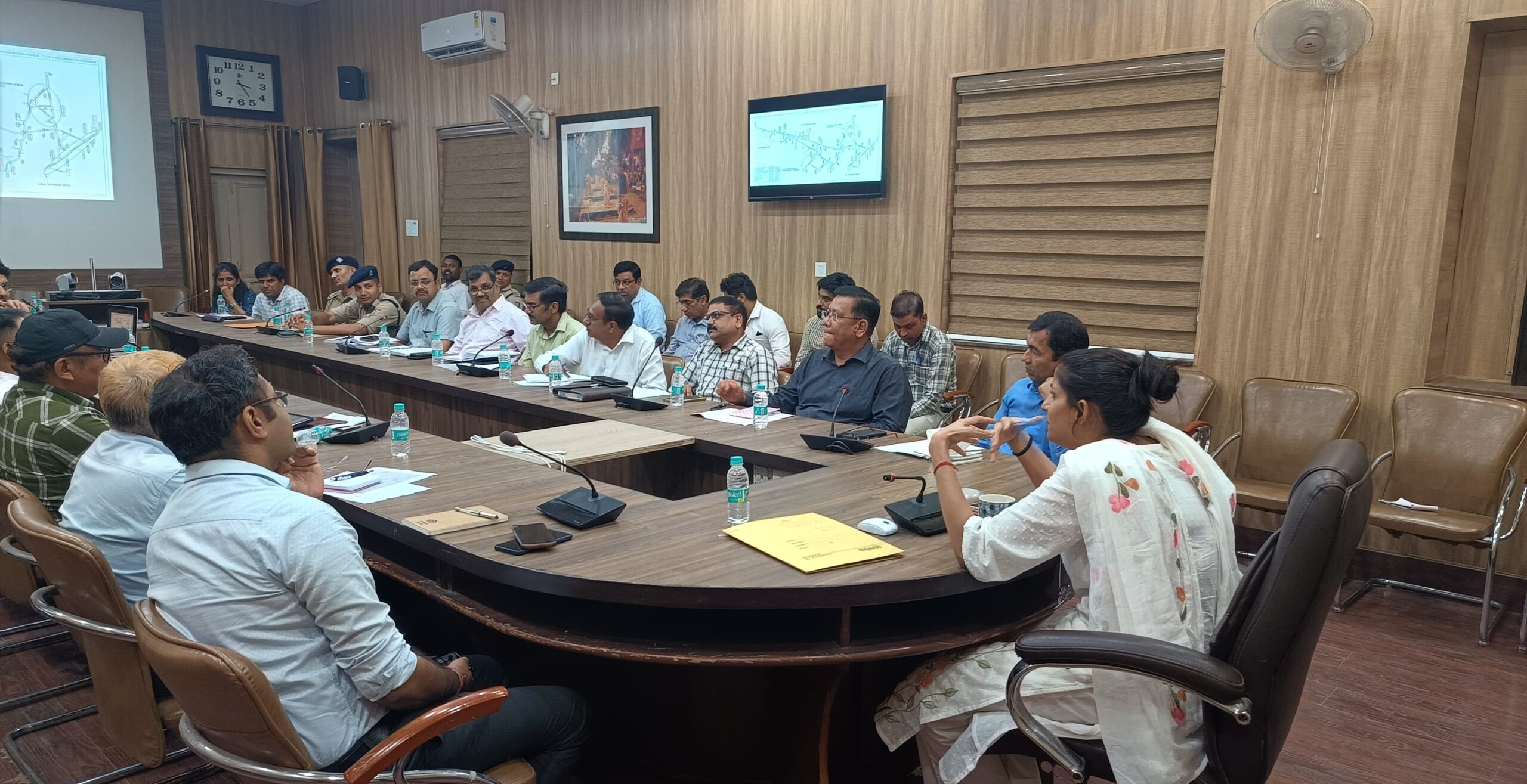 देहरादून। जिलाधिकारी सोनिका की अध्यक्षता में ऋषिपर्णा सभागार में वाह्य सहायतित वित्त पोषित योजना के अन्तर्गत देहरादून शहर के उपरगामी विद्युत लाईनों की भूमिगत करने से सम्बन्धित कार्यों हेतु बैठक आयोजित की गई। जिलाधिकारी ने उपस्थित अधिकारियों को सहयोग की भावना के साथ स्ट्रेचवार कार्य करने के निर्देश दिए ताकि कार्यों को समयबद्धता के साथ पूर्ण किया जा सके तथा जनमानस को असुविधा न हो।