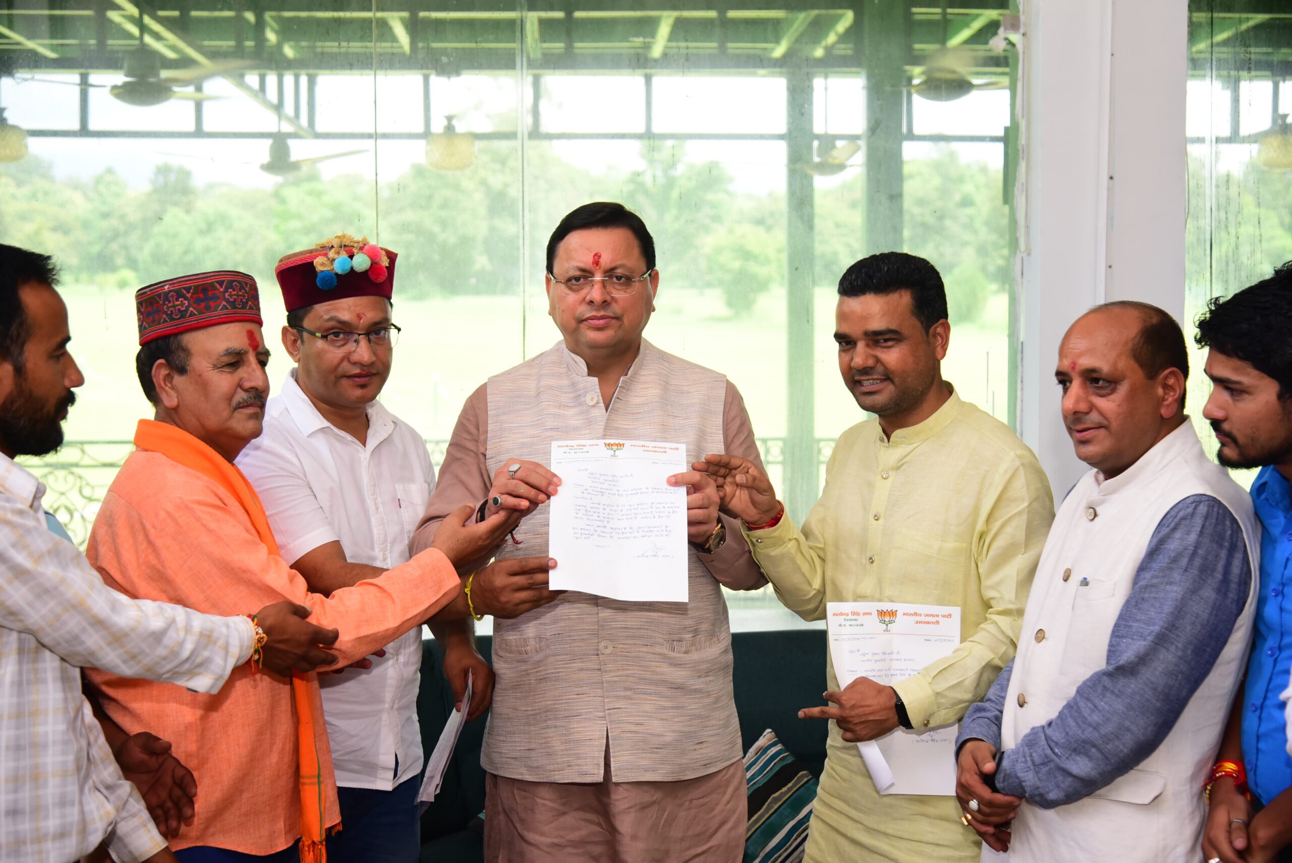 देहरादून। मुख्यमंत्री पुष्कर सिंह धामी से रविवार को जी.टी.सी हेलीपैड, देहरादून में पुरोला विधानसभा से आए प्रतिनिधिमंडल ने मुलाकात की। इस अवसर पर प्रतिनिधि मंडल ने राज्य सरकार द्वारा जनपद उत्तरकाशी के सर बडियार, सरनौल-सौत्तरी से सरूताल तक ट्रेक को ट्रेक ऑफ द ईयर घोषित किए जाने पर मुख्यमंत्री का आभार व्यक्त किया।