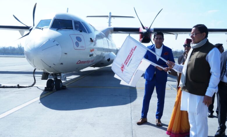 देहरादून। मुख्यमंत्री पुष्कर सिंह धामी ने बुधवार को जौलीग्रांट एयर पोर्ट से देहरादून-अयोध्या, देहरादून-अमृतसर, देहरादून-पंतनगर-वाराणसी के लिये एयर कनेक्टिविटी के अंतर्गत दीप प्रज्जवलित कर, केक काटकर तथा फ्लैग ऑफ कर एलाइंस एयर की उड़ानों का शुभारम्भ किया। मुख्य मंत्री ने इस मौके पर आयोजित कार्यक्रम को सम्बोधित करते हुए कहा कि हमारा यह प्रयास है कि सम्पूर्ण उत्तराखंड के अंदर लोगों का आवा-गमन सुविधाजनक, सरल व आसान हो, इसके लिये हम निरंतर प्रयासरत हैं तथा देश के लोग उत्तराखण्ड के विभिन्न स्थानों में आसानी से आ जा सकें, जिसके लिये हम लगातार कार्य कर रहे हैं।