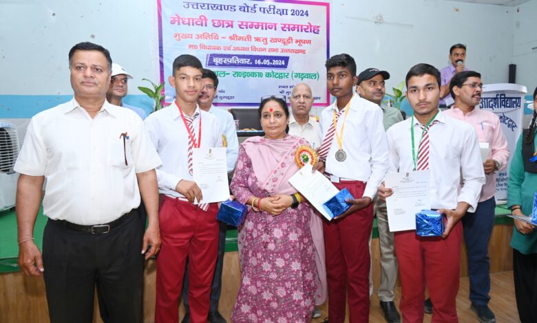 कोटद्वार। विधानसभा अध्यक्ष ऋतु खंण्डूड़ी भूषण ने कोटद्वार विधानसभा क्षेत्र के अंतर्गत उत्तराखंड बोर्ड परीक्षा 2024 में 10वीं व 12वीं कक्षा में अपने अपने विद्यालयों में प्रथम, द्वितीय एवं तृतीय स्थान प्राप्त करने वाले मेधावी विद्यार्थियों को सम्मानित किया गया। विधानसभा अध्यक्ष ने सभी विद्यार्थी अभिभावकों व शिक्षकों को शुभकामनाएं प्रेषित करते हुए शिक्षा के क्षेत्र में कोटद्वार का नाम आगे बढ़ने के लिए शुभकामनाएं प्रेषित की।