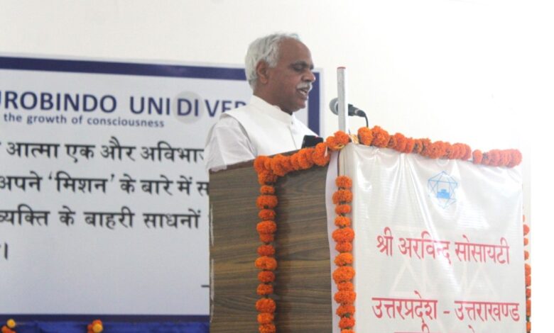 देहरादून। अरविंद सोसाइटी उत्तर प्रदेश एवं उत्तराखंड राज्य समिति के द्वारा 6-7 अप्रैल 2024 को वार्षिक सम्मेलन का ऑरोवैली आश्रम ऋषिद्वार, रायवाला में आयोजन किया गया। सम्मेलन का विषय था, “श्री अरविंद के आलोक में सनातन संस्कृति व राष्ट्रवाद“। कार्यक्रम का उद्घाटन मुख्य अतिथि पद्म श्री डाॅ. बी. के. एस. संजय, श्री अरविंद सोसायटी के संस्थापक अध्यक्ष, स्वामी ब्रह्मदेव, समिति के अध्यक्ष विष्णु प्रकाश गोयल, समिति के पूर्व अध्यक्ष डाॅ. जे. पी. सिंह, जोनल कमिटी के सचिव, अरूण कुमार व्यास के द्वारा दीप प्रज्ज्वलित कर किया गया। पद्मश्री डाॅॅ. बी. के. एस. संजय ने अपने संबोधन के पहले श्री अरविंद को श्रृद्धांजलि दी। उन्होंने कहा, श्री अरविंद बहु प्रतिभा के धनी व्यक्ति थे जिन्होंने अपना पूरा जीवन राष्ट्र की सेवा में ही लगाया। श्री अरविंद अपने ढंग से क्रांतिकारी विचार थे,जिन्होंने योग, दर्शन एवं संस्कृति को राष्ट्रवाद से जोड़ा।