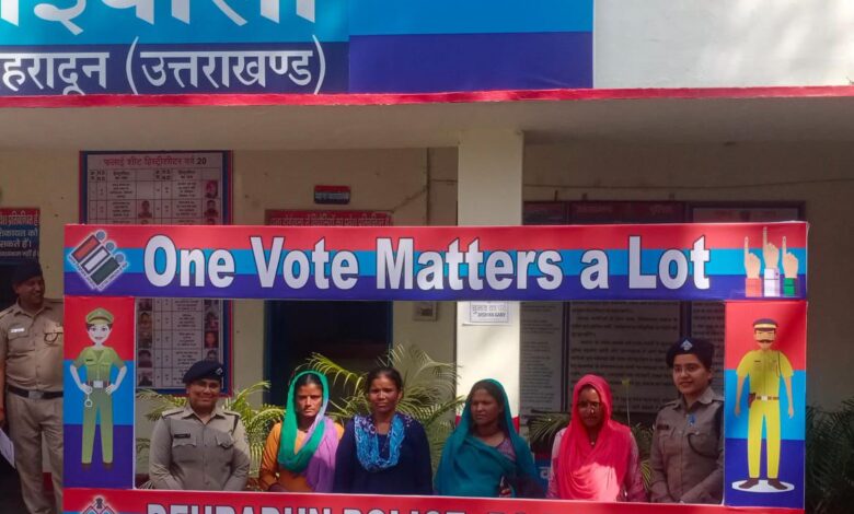 देहरादून। आगामी लोकसभा निर्वाचन के दृष्टिगत वरिष्ठ पुलिस अधीक्षक देहरादून द्वारा सभी अधीनस्थों को अपने-अपने थाना क्षेत्रों में आम जनमानस को निर्भीक होकर मतदान के लिए जागरूक करने तथा लोगो को उनके वोट के महत्व के बारे में समझाते हुए उन्हें अपने मताधिकार का प्रयोग करने के लिए प्रेरित करने के निर्देश दिए गए है, इसी क्रम में जनपद पुलिस द्वारा एक नई पहल की शुरुआत करते हुए जनपद के सभी थानों में एक वोट बहुत मायने रखता है के फ्लैक्स बोर्ड तथा सेल्फी पॉइंट बनाये गए है, जिनके माध्यम से आम जन को उनके वोट के महत्व के प्रति जागरूक करते हुए अपने मताधिकार का प्रयोग कर चुनाव के इस महापर्व में अपना योगदान देने के लिये प्रेरित किया जा रहा है। दून पुलिस की इस अनूठी पहल की लोगो द्वारा प्रशंसा की जा रही है, तथा उक्त सेल्फी पॉइंट्स में अपनी फोटो खिंचवाते हुए लोकतंत्र के इस महापर्व में अपना योगदान देने का संकल्प लिया जा रहा है।