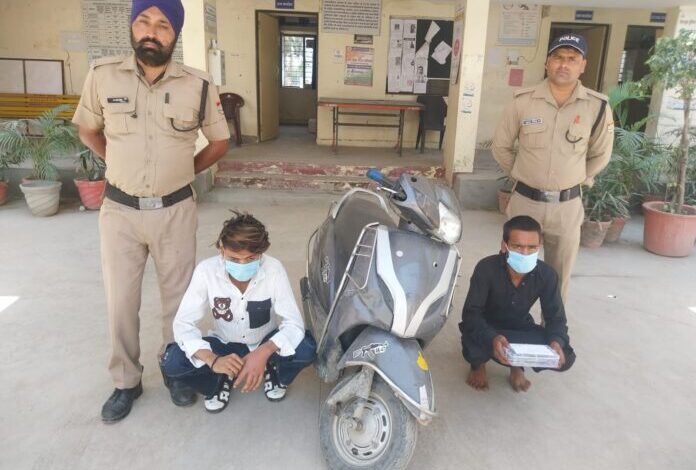 प्राप्त जानकारी के अनुसार अनिल पुत्र दीपक निवासी ट्रांसपोर्टनगर सेवलाकला खुर्द कोतवाली पटेलनगर द्वारा थाना पटेलनगर पर एक प्रार्थना पत्र दिया कि 14 अप्रैल 2024 को लालपुल से ट्रांसपोर्टनगर की ओर जाते समय स्कूटी सवार 02 लडको द्वारा उनके हाथ से उसका मोबाइल फोन छीन लिया और मौके से फरार हो गये। पुलिस ने मुकदमा दर्ज कर जांच शुरू कर दी। घटना की गम्भीरता के दृष्टिगत घटना के खुलासे हेतु एसएसपी अजय सिंह द्वारा दिए गए निर्देशों पर प्रभारी निरीक्षक पटेलनगर कमल कुमार लुण्ठी द्वारा थाना स्तर पर पुलिस टीम गठित की गई। गठित पुलिस टीम द्वारा घटना स्थल का निरीक्षण कर व पीडित व्यक्ति से घटना के संबंध में जानकारी प्राप्त की। पुलिस द्वारा किये जा रहे प्रयासों के परिणामस्वरूप आज पुलिस टीम को मिली सूचना पर घटना को अंजाम देने वाले 02 आरोपियोंकृअरमान पुत्र इसरारए अकरम पुत्र असलम को चन्द्रबनी चैक से चन्द्रबनी की ओर जाने वाली सडक से गिरफ्तार किया गया। गिरफ्तार आरोपियों के कब्जे से 01 मोबाइल फोन व घटना मे प्रयुक्त स्कूटी यएक्टिवाद्ध बरामद की गई। बरामद स्कूटी के संबंध में जानकारी करने पर उक्त स्कूटी में लकी नंबर प्लेट फर्जी पाई गई इसके संबंध में जानकारी करने पर उनके द्वारा बताया गया कि उक्त स्कूटी को उनके द्वारा नशे की हालत में देहरादून में एक पार्किंग से चोरी किया गया थाए तथा पुलिस से बचने के लिए उनके द्वारा स्कूटी में बुलेट मोटरसाइकिल के नंबर का इस्तेमाल किया जा रहा थाए 14 अप्रैल को ट्रांर्सपोर्टनगर के पास मोबाइल लूट की घटना में भी उनके द्वारा उत्तफ चोरी की स्कूटी का इस्तेमाल किया गया था। पुलिस ने दोनों के खिलाफ मुुकदमा दर्ज कर उनको न्यायालय में पेश किया जहां से उनको न्यायिक हिरासत में जेल भेज दिया।