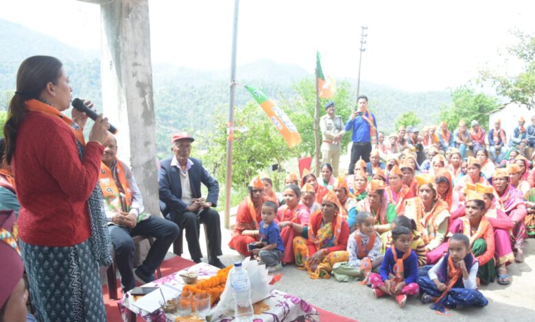 अल्मोड़ा। लोकसभा चुनाव के दृष्टिगत उत्तराखंड सरकार में कैबिनेट मंत्री व सोमेश्वर विधायक रेखा आर्या ताकुला मंडल पहुंची जहां उन्होंने पाटिया और नाईढोल शक्ति केंद्र में जनसभा को संबोधित किया।इस दौरान पार्टी कार्यकर्ताओं द्वारा कैबिनेट मंत्री का स्वागत एवं अभिनंदन किया गया।साथ ही स्थानीय जनता ने उन्हें अपनी विभिन्न समस्याओं से अवगत कराया जिसे जल्द से जल्द पूरा करने का आश्वासन मंत्री रेखा आर्या ने दिया। सभी को संबोधित करते हुए कैबिनेट मंत्री ने स्थानीय जनता को केंद्र व राज्य सरकार की जनकल्याणकारी योजनाओं से अवगत कराया।कहा कि पिछले एक दशक में प्रधानमंत्री नरेंद्र मोदी जी के नेतृत्व में देवभूमि उत्तराखंड में नवीन युग का उदय हुआ है और अंत्योदय का संकल्प साकार हुआ है। कहा कि किसी ने सोचा नहीं होगा कि आज सीमावर्ती इलाकों में भी लोगों को मूलभूत सुविधाएं उपलब्ध होगी लेकिन ष्मोदी है तो मुमकिन है और आज हर वर्ग तक मूलभूत सुविधाएं पहुंच रहीं हैं।